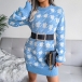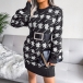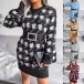 When the days get cold,this knit sweater can be your wise choice. The Houndstooth element design makes this piece look so stylish and popular.Finished with lantern sleeve,round neck and a fit silhouette,this knit dress not only can keep you warm,but also can showcase your slender figure. You can match with a waistband if you wanna look more stylish and attractive.
