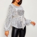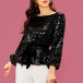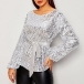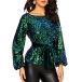 When you go out with this wonderful top,you are sure to catch more eyes. The sequin details make it look so shinning,while the lantern sleeve and lace-up design will further enhance its charm. You can just match it with your tight pants to start your wonderful day.