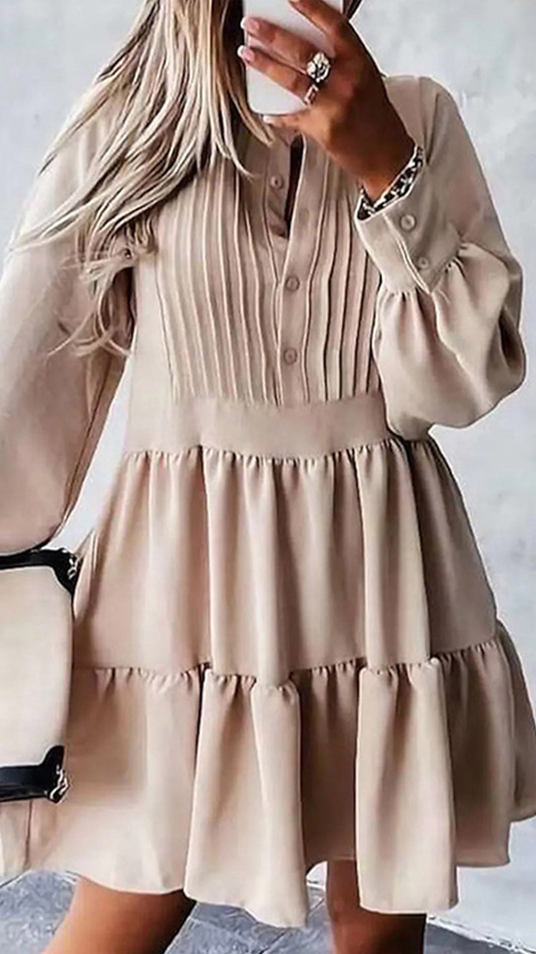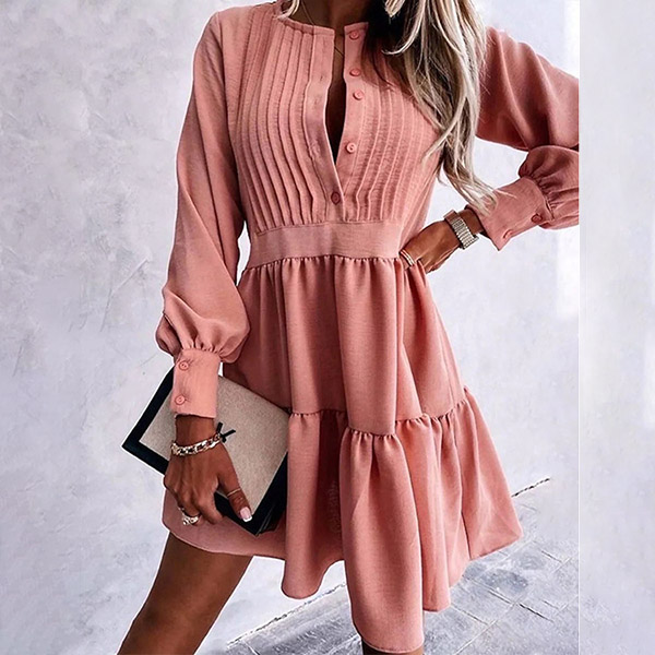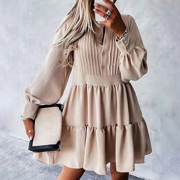 For your daily out,you can just trust in this dress to give you a wonderful day. Solid color style,the lantern sleeve and ruffle hem design can lend you some sweet and sassy sense,while its soft,breathable fabric can give you an all-day comfort. Like it? Then invite it to your wardrobe!