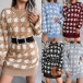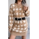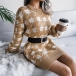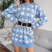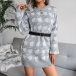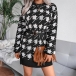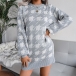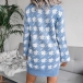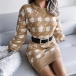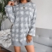 Fashion Lantern Sleeve Round Neck Slim Fit Houndstooth Sweater Dress