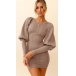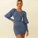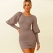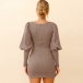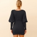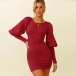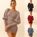 Fashion Lantern Sleeve Round Neck Solid Color Slim Fit Knit Dress