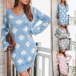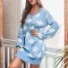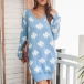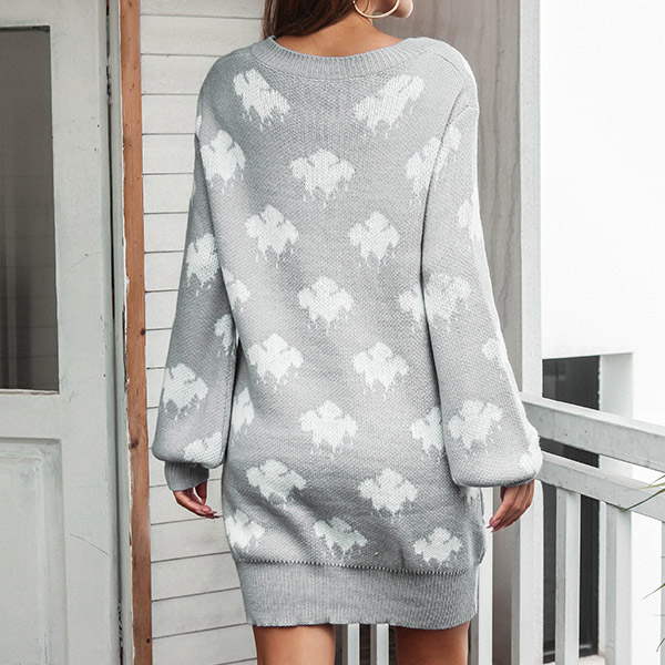 Fashion Lantern Sleeve V-neck Printed Sweater Dress
