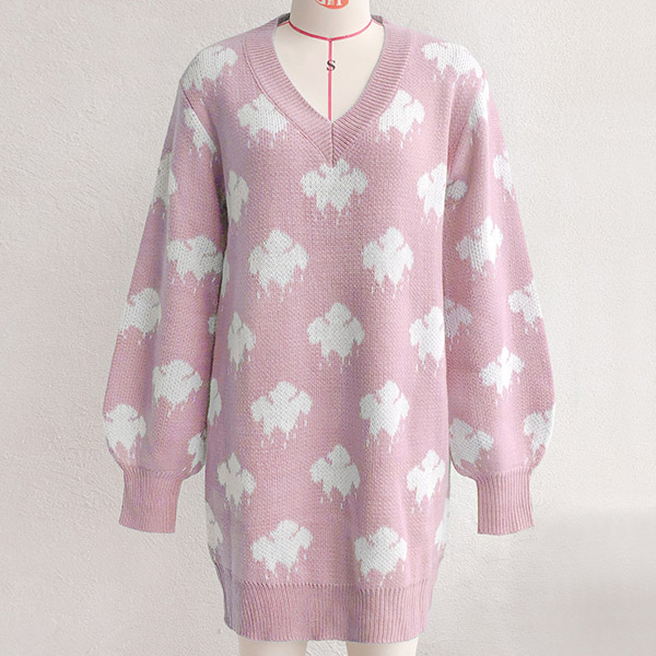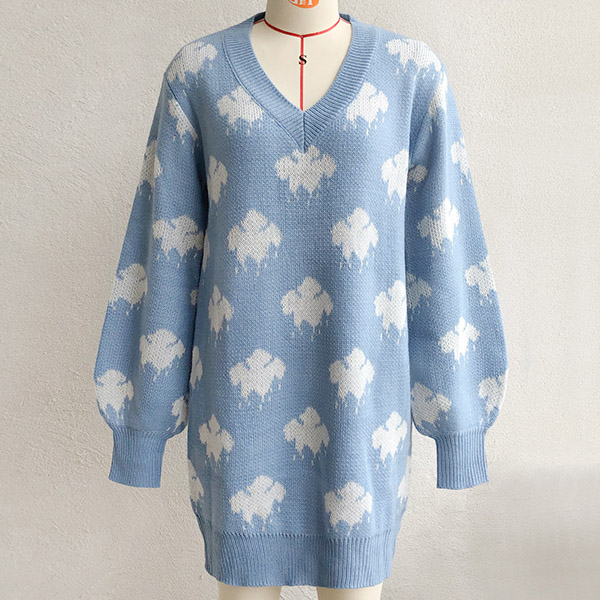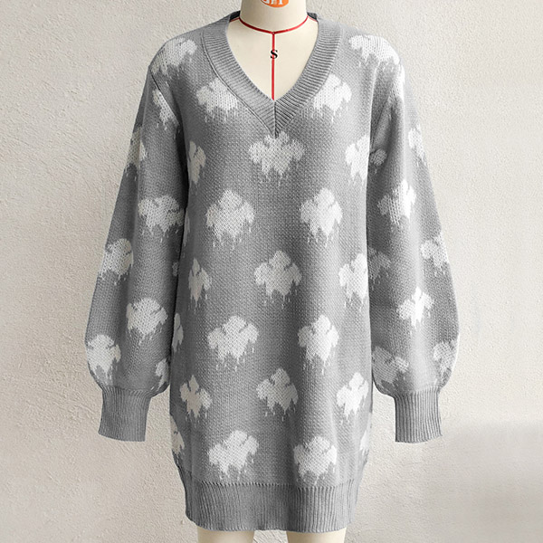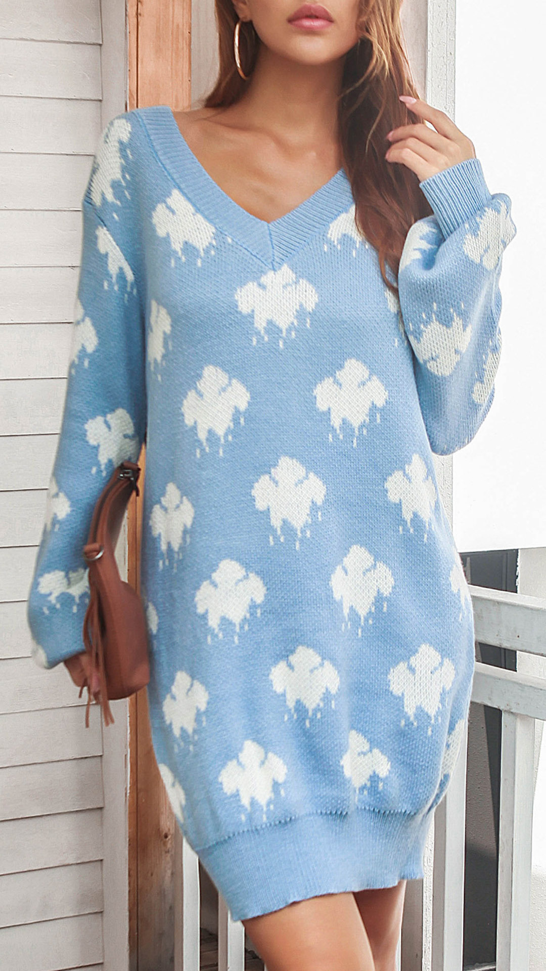 For the cold days,this sweater dress is worth to be your wardrobe staple. The printed pattern,lantern sleeve and v-neck design make this piece full of sassy and flirty vibes. As for a stylish and charming autumn look,we suggest you matching with your over-the-knee boots.