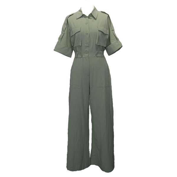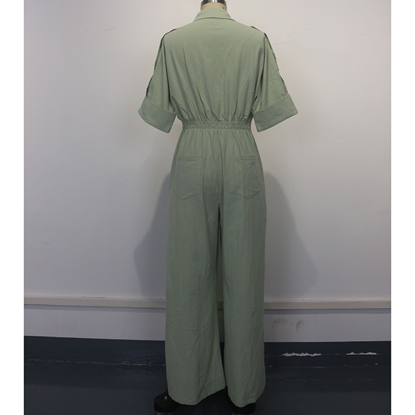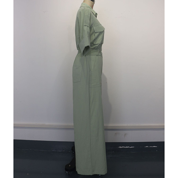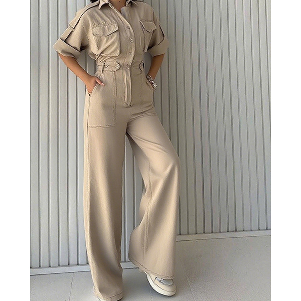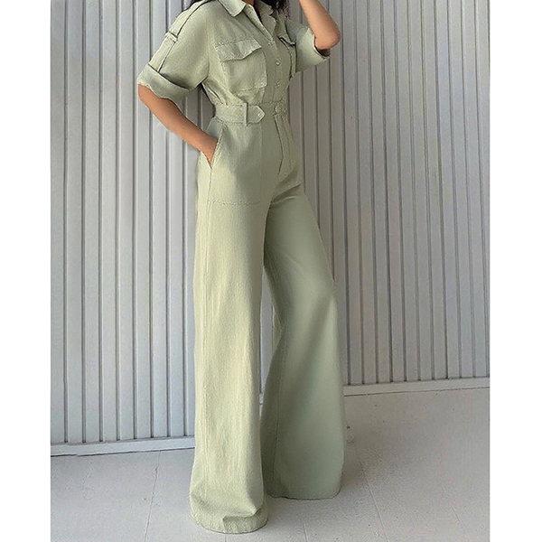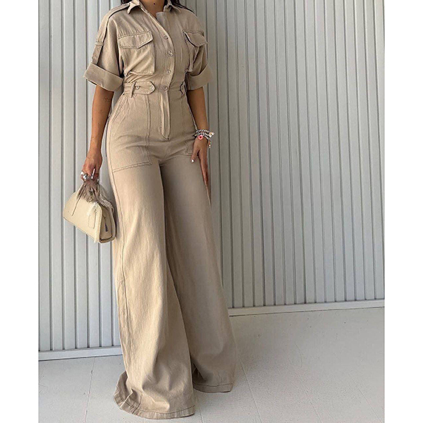 Elevate your style with this Cargo Jumpsuit. This trendy jumpsuit features a classic lapel collar and front button detailing for a polished look. The short sleeves provide a relaxed vibe, while the high-rise waist accentuates your silhouette. Perfect for daily wear.