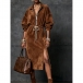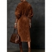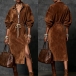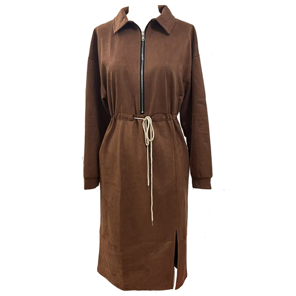 Fashion Lapel Collar Half-zipper Long Sleeve Drawstring Waist Side Slit Artificial Suede Dress