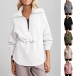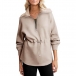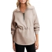 Fashion Lapel Collar Half-zipper V-Neck Drawstring Waist Long Sleeve Sweatshirt