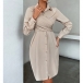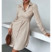 Fashion Lapel Collar Long Sleeve Criss-cross Ruched Front Button Shirt Dress