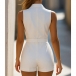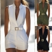Fashion Lapel Collar Plunge V-neck Sleeveless Romper with Belt