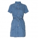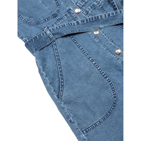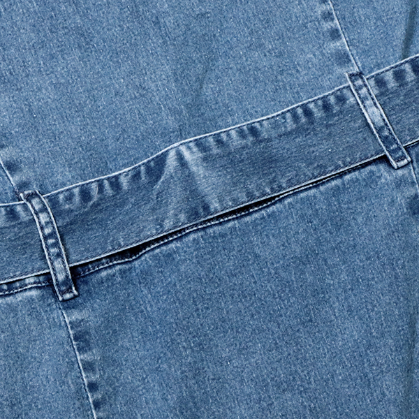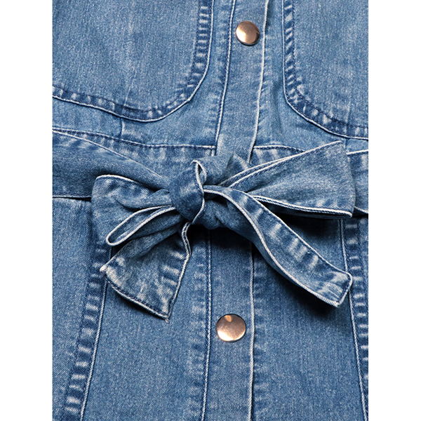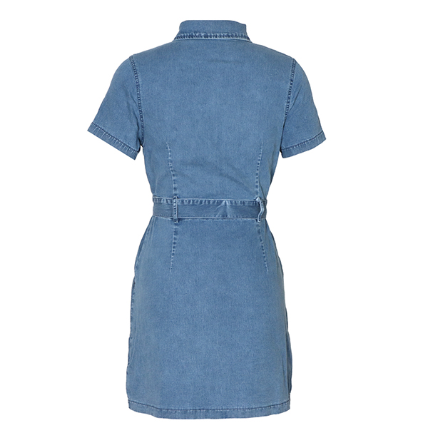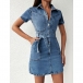 Fashion Lapel Collar Short Sleeve Front Button Self-tie Old-washed Denim Shirt Dress