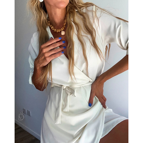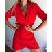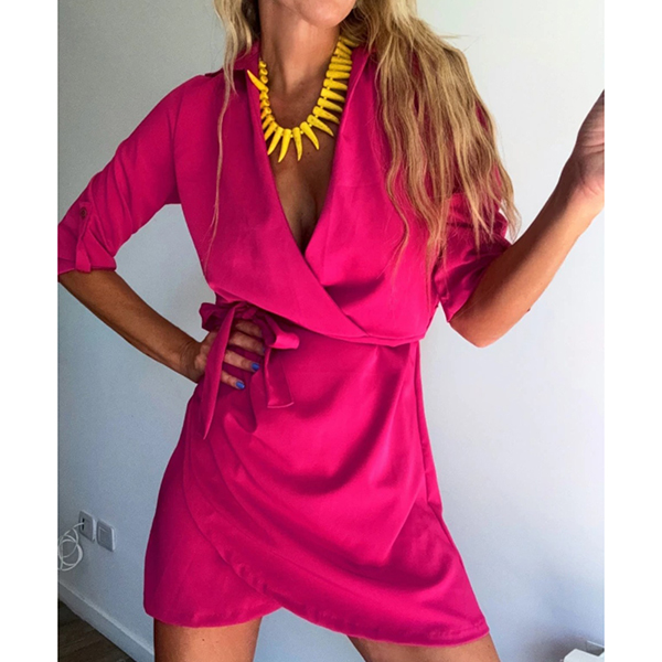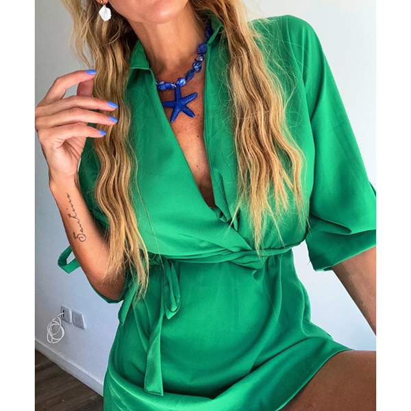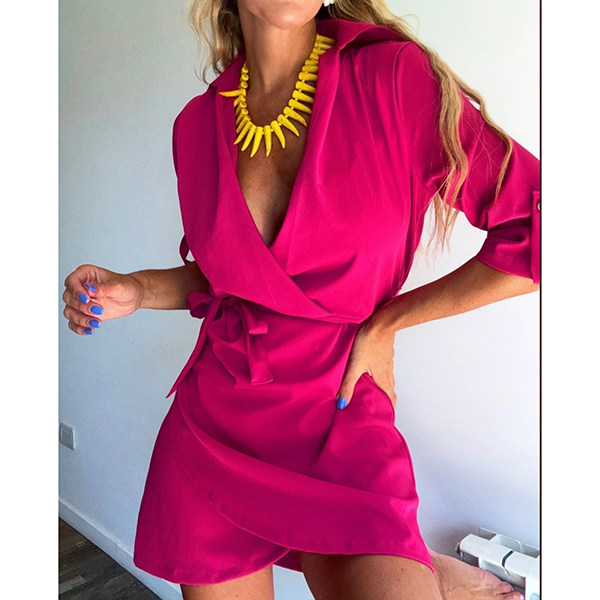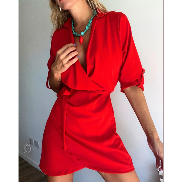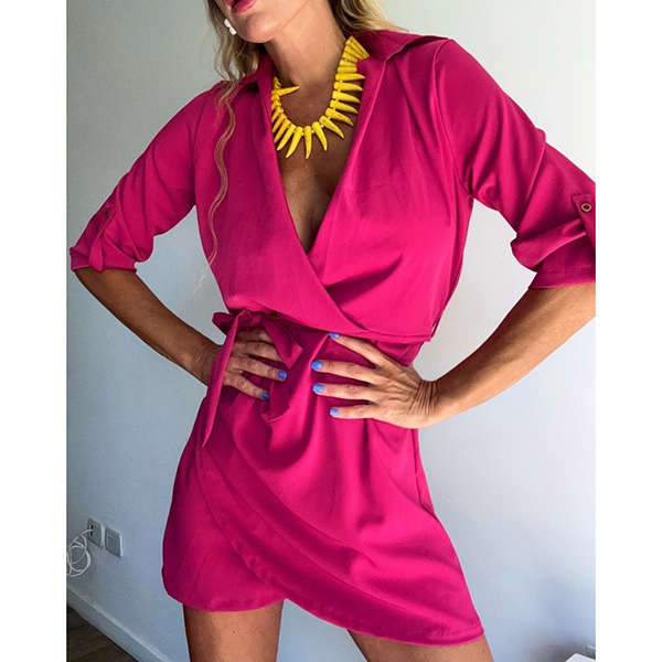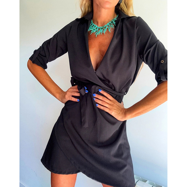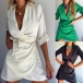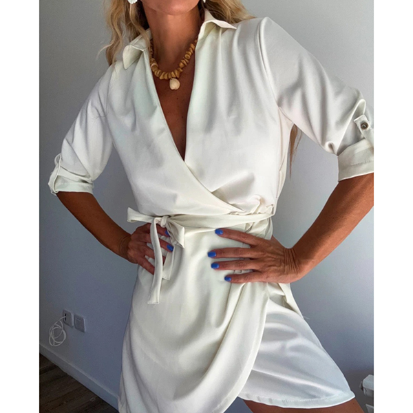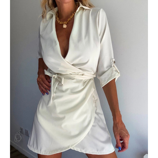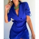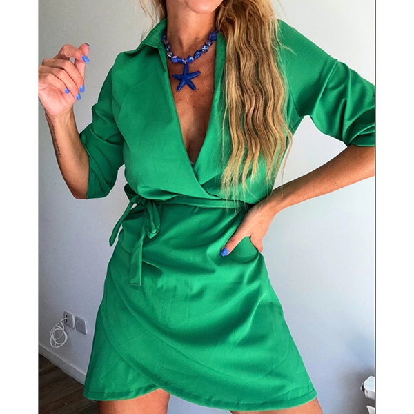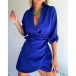 Fashion Lapel Collar V-neck Long Sleeve Irregular Hemline Mini Dress