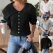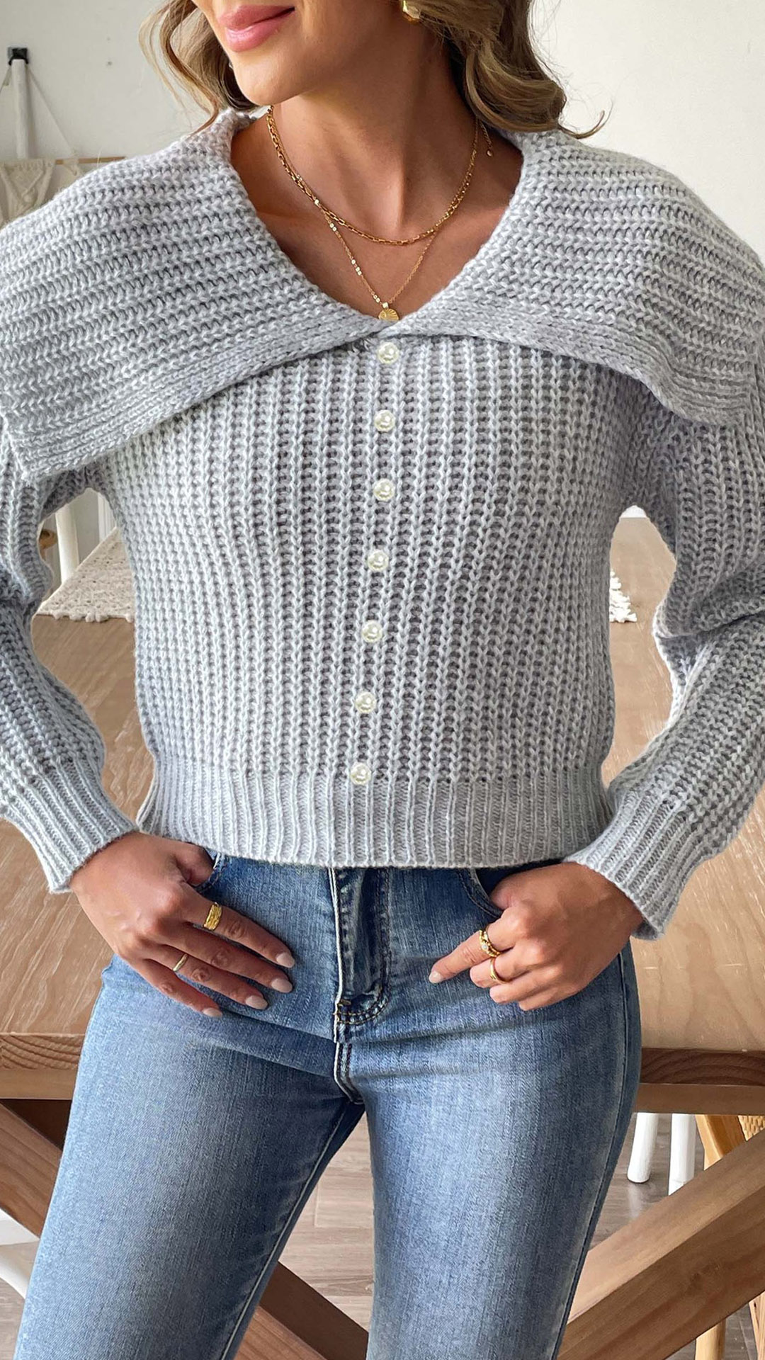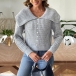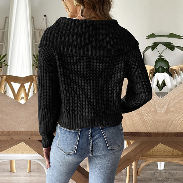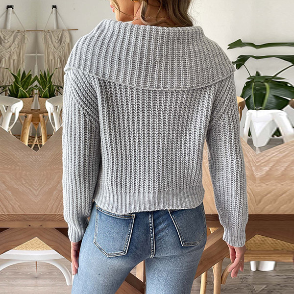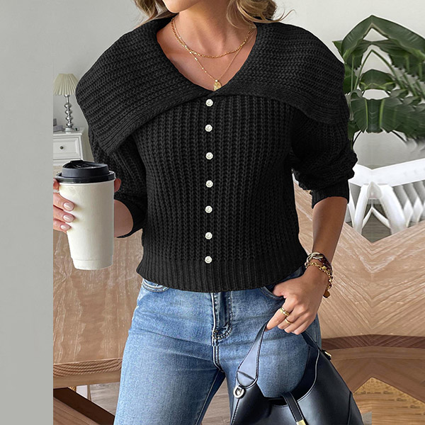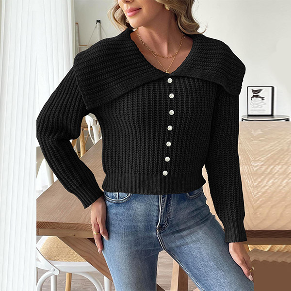 Look at this sweater!The big lapel neckline adds a sophisticated touch to the sweater, creating a polished and elegant silhouette. The front button detailing adds a classic and timeless element to the design~It offers a cozy and chic look for the colder months.