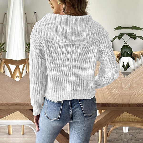 Fashion Lapel Front Button Long Sleeve Knitted Sweater