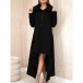 This sweatshirt dress combines the comfort of a sweatshirt with the chicness of a dress. The lapel front zipper detail adds a modern and edgy touch to the dress, allowing you to adjust the neckline and create different looks. The irregular hemline design adds a unique and fashion-forward element to the dress, adding interest and movement to the silhouette. Pair it with sneakers for a casual and laid-back outfit.