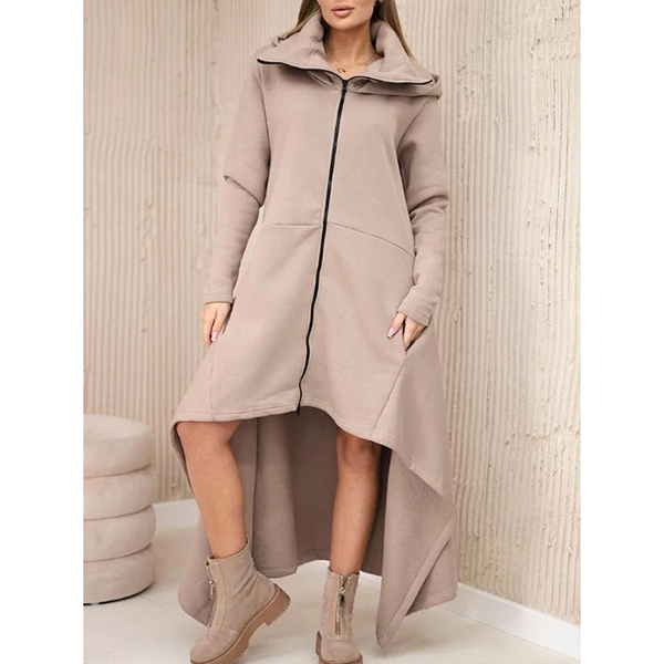 Fashion Lapel Front Zipper Irregular Hemline Sweatshirt Dress