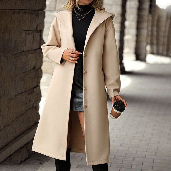 This long-line jacket features a lapel hood, long sleeves, and side slits, creating a chic and stylish look. Pair it with jeans and sneakers for a casual yet stylish look!