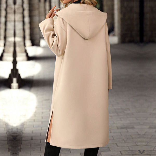 Fashion Lapel Hooded Long Sleeve Side Slit Long-line Jacket