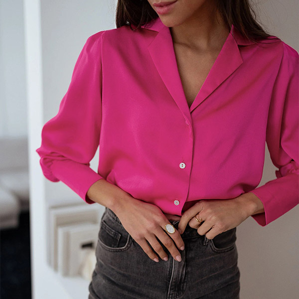 This fashionable button-up shirt features a classic lapel collar design and long sleeves, creating a versatile and stylish garment that can be dressed up or down.
