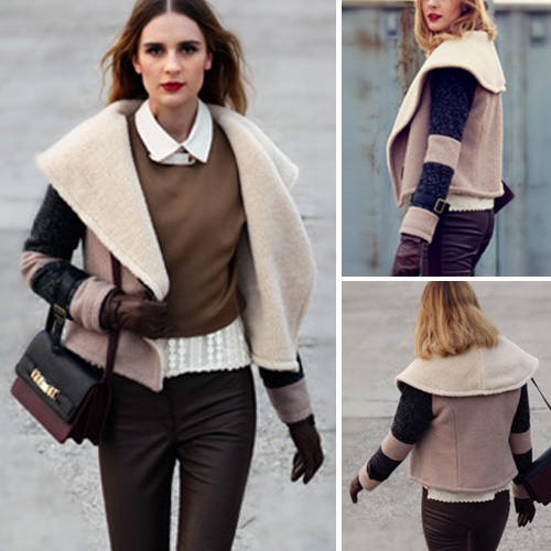 It features big lapel,contrast color long sleeve design. Wear it with your tight pants and ankle boots,