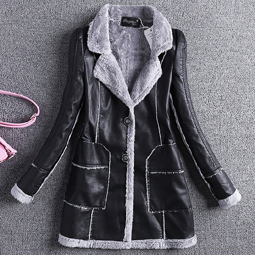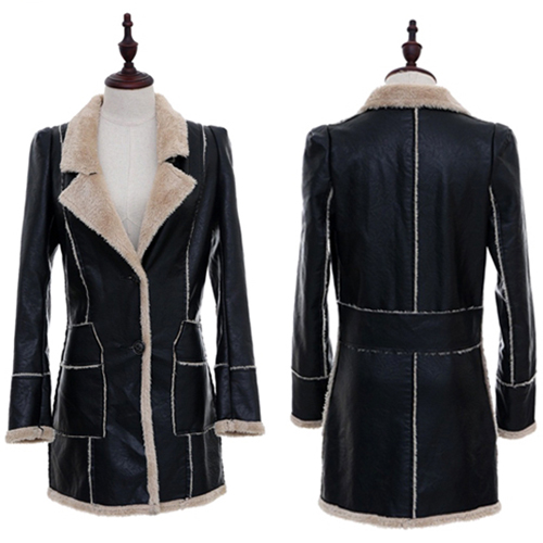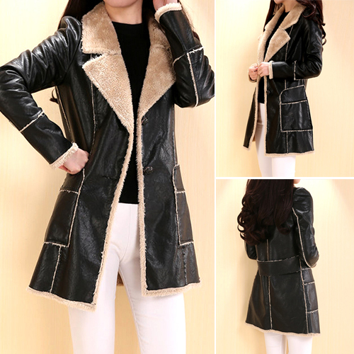 single-breasted and gathered waist, this PU coat is decorated with woolen style, which gives you a
