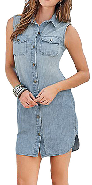 miss this denim dress? Denim series, never out of style, this dress features lapel, sleeveless and