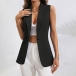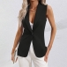 This black vest features a lapel collar, creating a stylish and versatile look. Pair it with a blouse and trousers for a chic and professional look, or wear it over a dress for a modern and edgy vibe. Hope you like it.