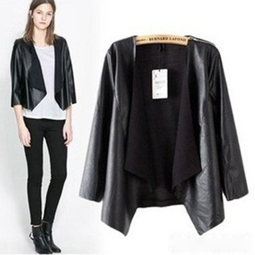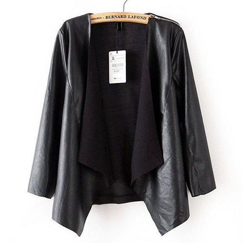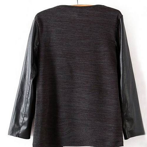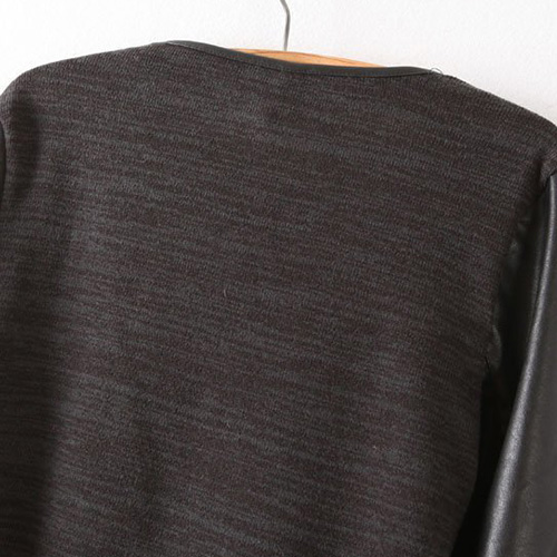 Such a chic and stylish cardigan. It features PU leather spliced design,with long sleeve and lapel.