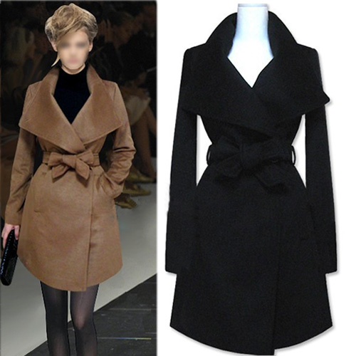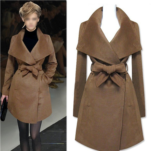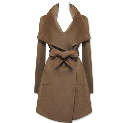 Show your elegant temperament and slender figure with this trench coat. It features solid color and big lapel design. With sash design,which help to gather your waist. You can pair with your black stockings and boots.