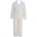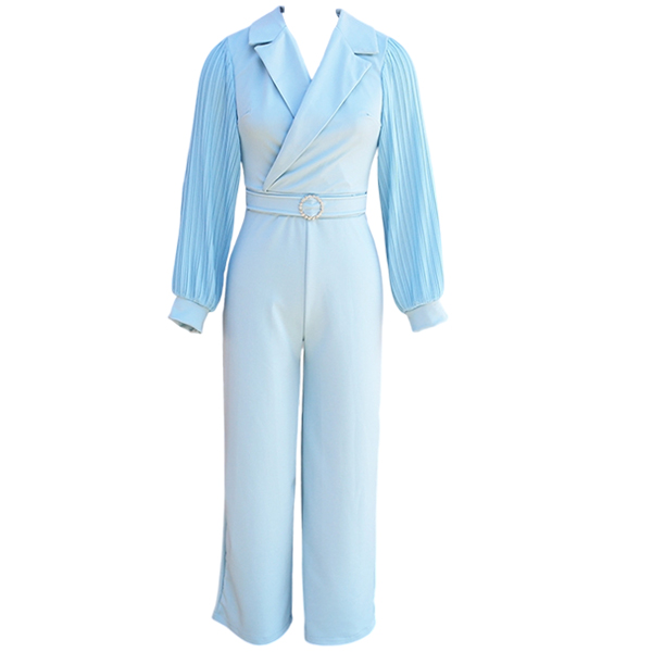 Fashion Lapel V-neck Chiffon Spliced Long Sleeve Straight-cut Jumpsuit with Belt