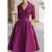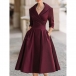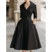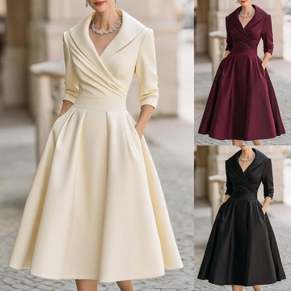 Fashion Lapel V-neck Elbow Sleeve High-rise Side Pockets Midi Dress