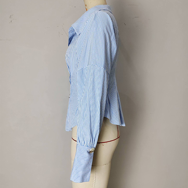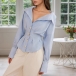 Fashion Lapel V-neck Front Button Long Sleeve Cinch Waist Blouse