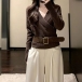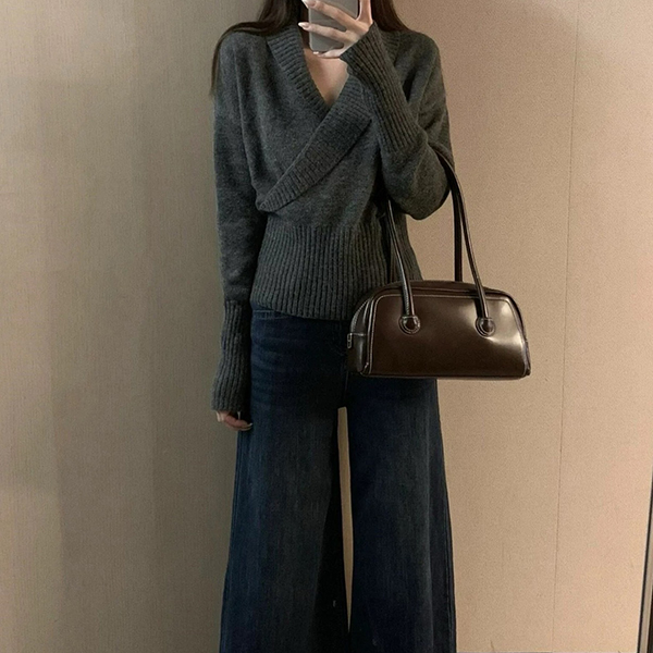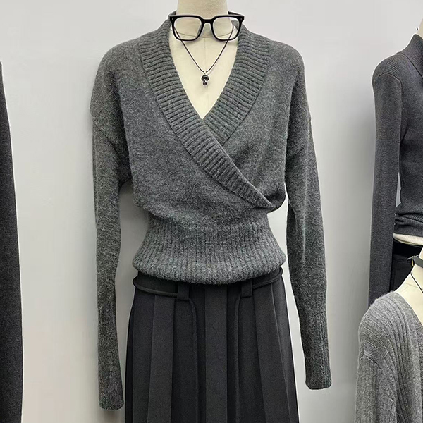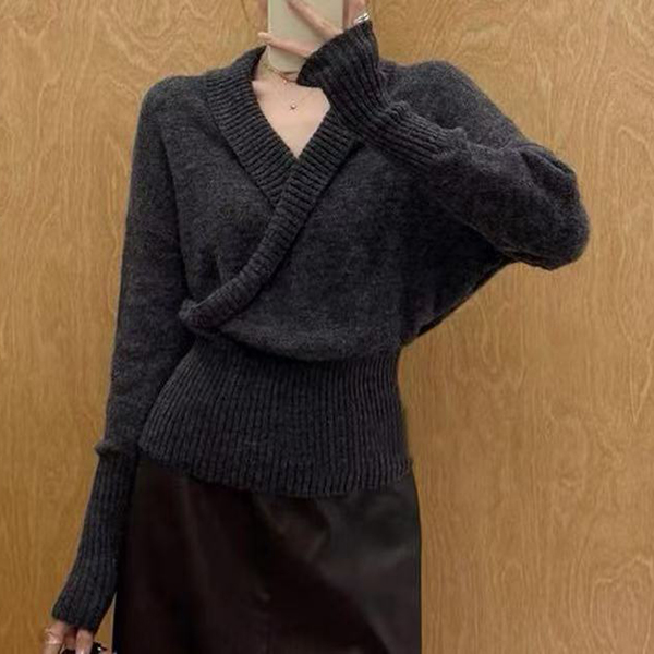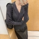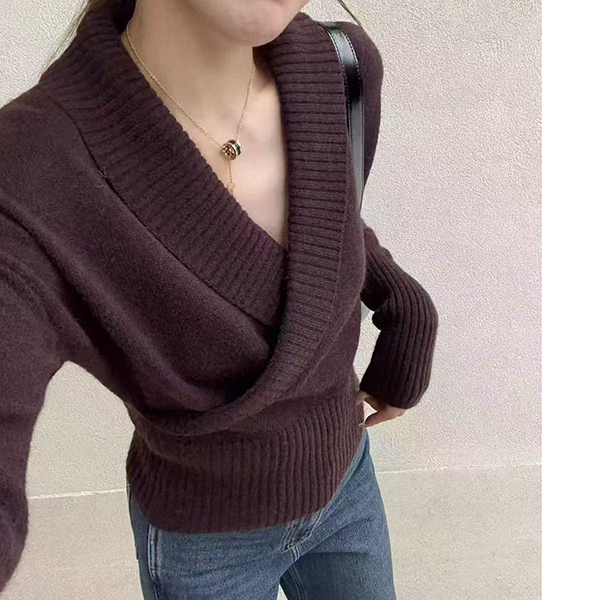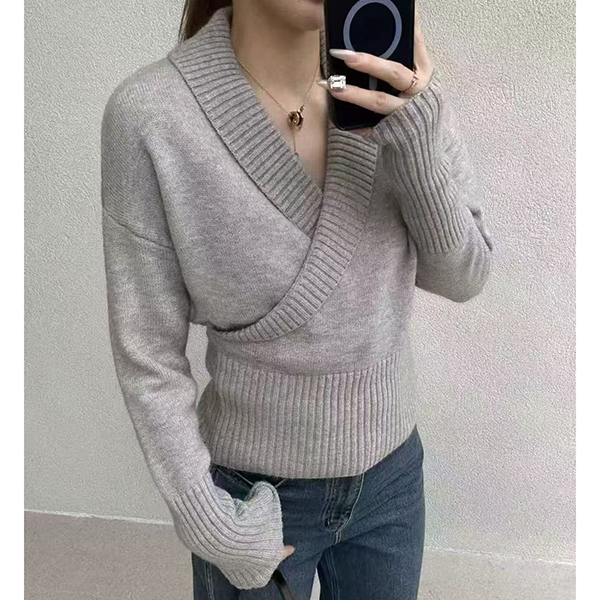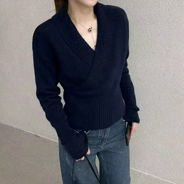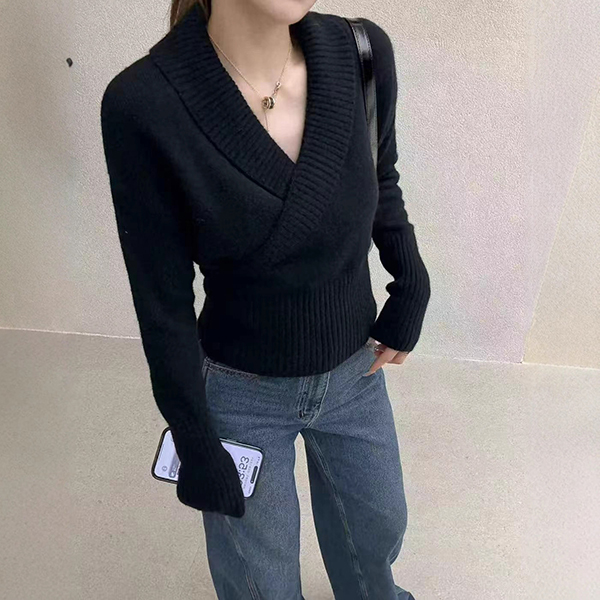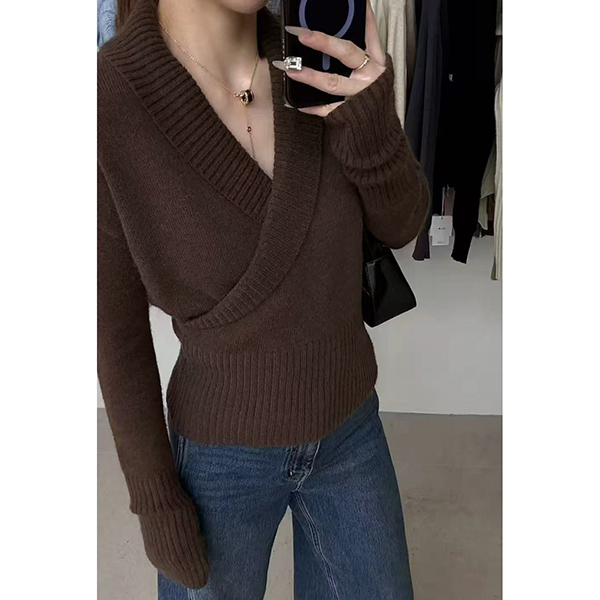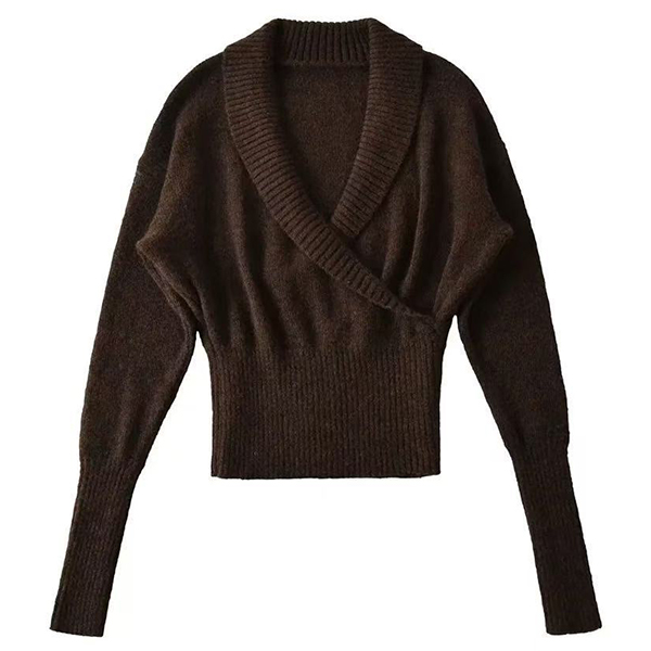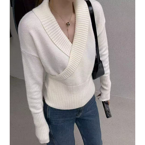 Fashion Lapel V-neck Long Sleeve Knitted Sweater