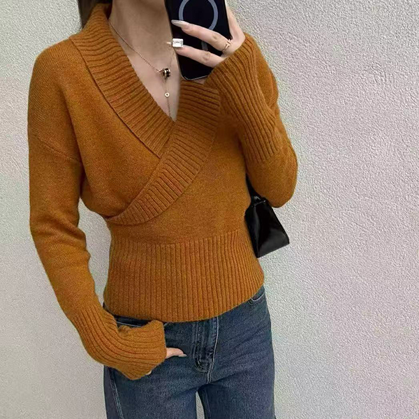Embrace comfort and style with this Knitted Sweater. This chic sweater features a sophisticated lapel V-neck design that adds a touch of elegance. Crafted from soft, cozy knit fabric, it offers a relaxed fit that's easy to style.