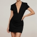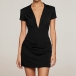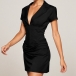 Fashion Lapel V-neck Short Sleeve Ruched Bodycon Dress