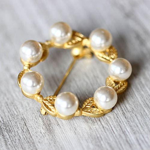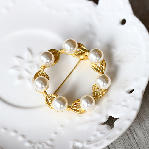 Fashion Leaf Pearl Corsage Brooch