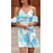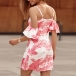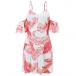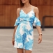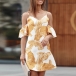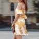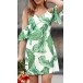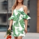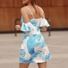 Fashion Leaf Printed V-neck Open-shoulder Mini Dress