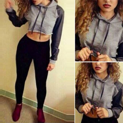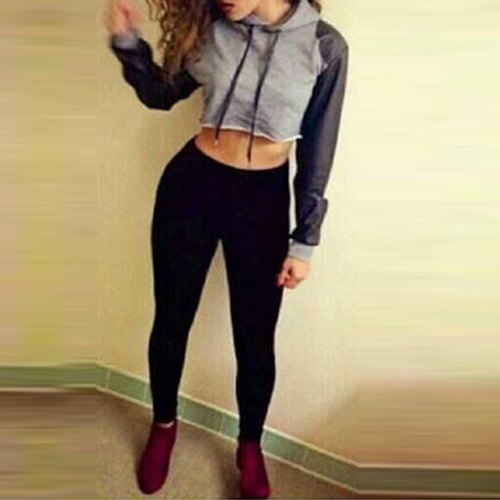 spliced design, this crop sweatshirt is the perfect way to show off your sexy waistline. Adding your