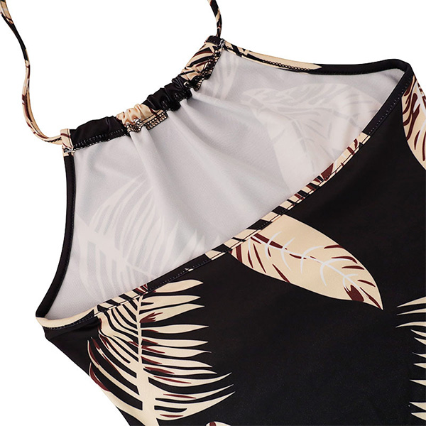 Wow, sexy dress! The leaves printed pattern adds a touch of nature-inspired beauty, making a statement with its unique and eye-catching design. The backless halterneck style showcases your shoulders and back, creating a sexy and alluring look.