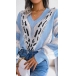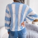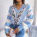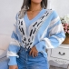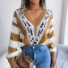 Fashion Leopard Contrast Color V-neck Long Sleeve Knitted Shirt