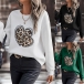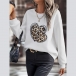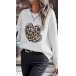 Fashion Leopard Heart Printed Round Neck Long Sleeve Shirt