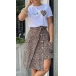 When you have no time to do your daily matching,then this two-piece set can be your perfect solution. It consists of a short sleeve round neck t-shirt and a high waist irregular hem skirt,this two-piece set is a good weapon to exude your style and charm. Moreover,the leopard heart,front-button and pocket details will make it more distinctive. Just slip into this two-piece set to have a wonderful day.