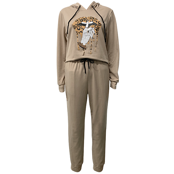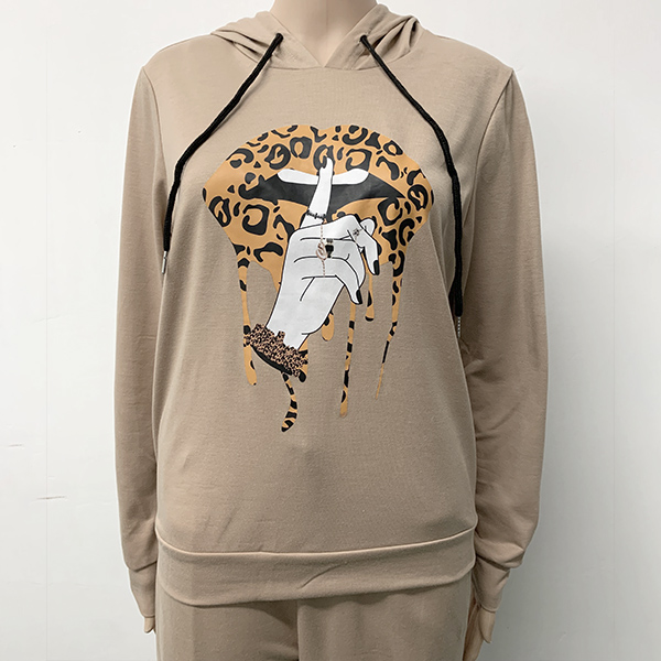 Fashion Leopard Lip Pattern Long Sleeve Hoodie + Pants Two-piece Set