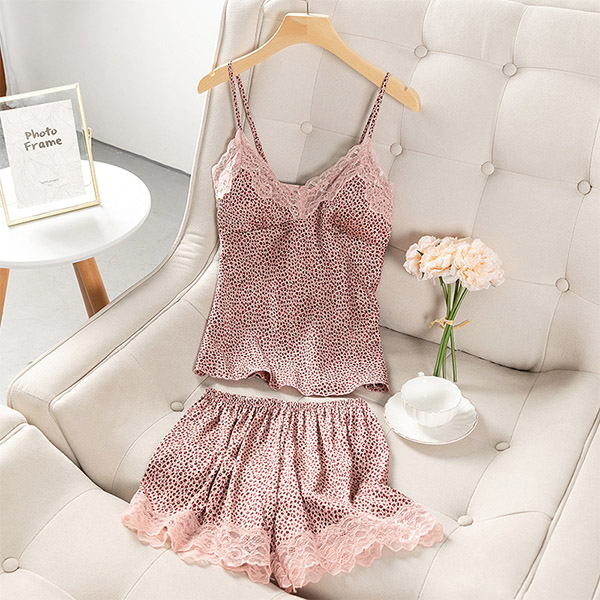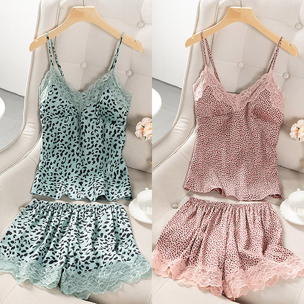 Fashion Leopard Print Lace Spliced Two-piece Loungewear