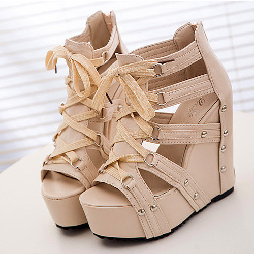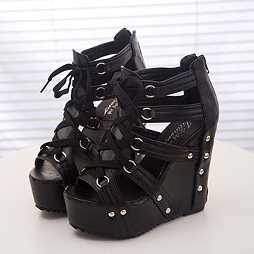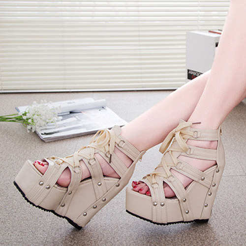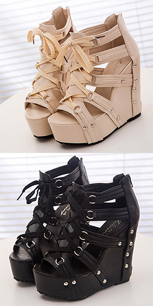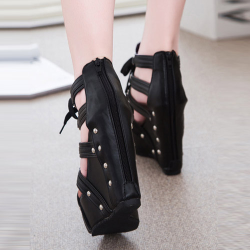 It features leopard and rivets design,chic and stylish. Peep toe style,wedge
