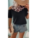 The standout feature of this top is the eye-catching leopard print that covers the entirety of the fabric, lending a wild, statement-making vibe. I like the open-shoulder design, and you?