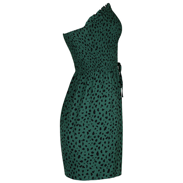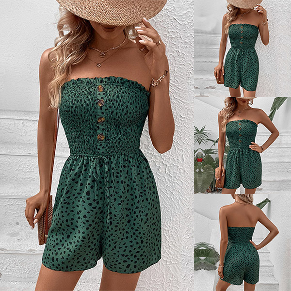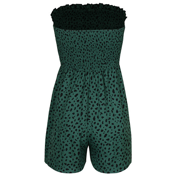 Fashion Leopard Print Strapless Smocked Bodice Button Drawstring Romper