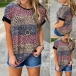 Fashion Leopard Printed Contrast Color Round Neck Short Sleeve T-shirt