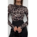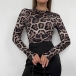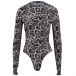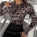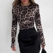Fashion Leopard Printed Crew Neck Long Sleeve Bodysuit
