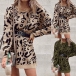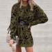 Fashion Leopard Printed Crew Neck Long Sleeve Sweater Dress