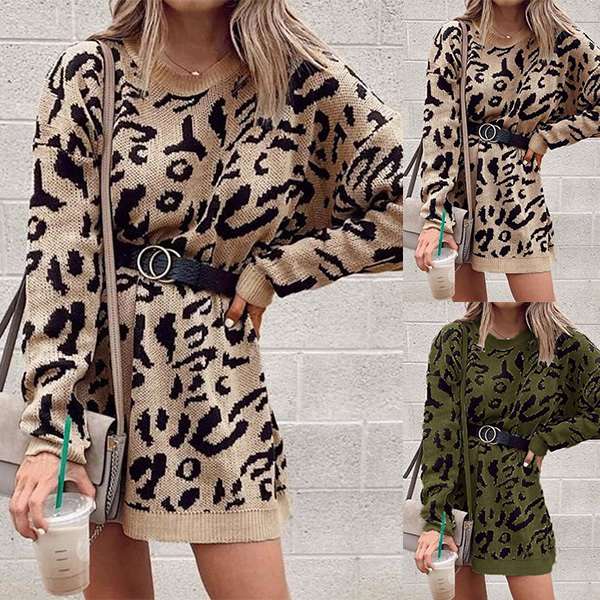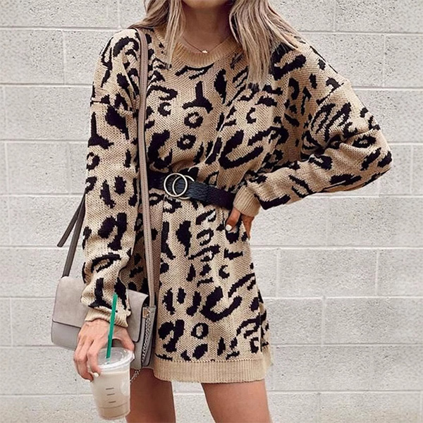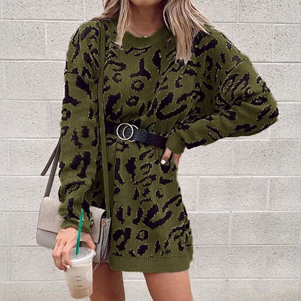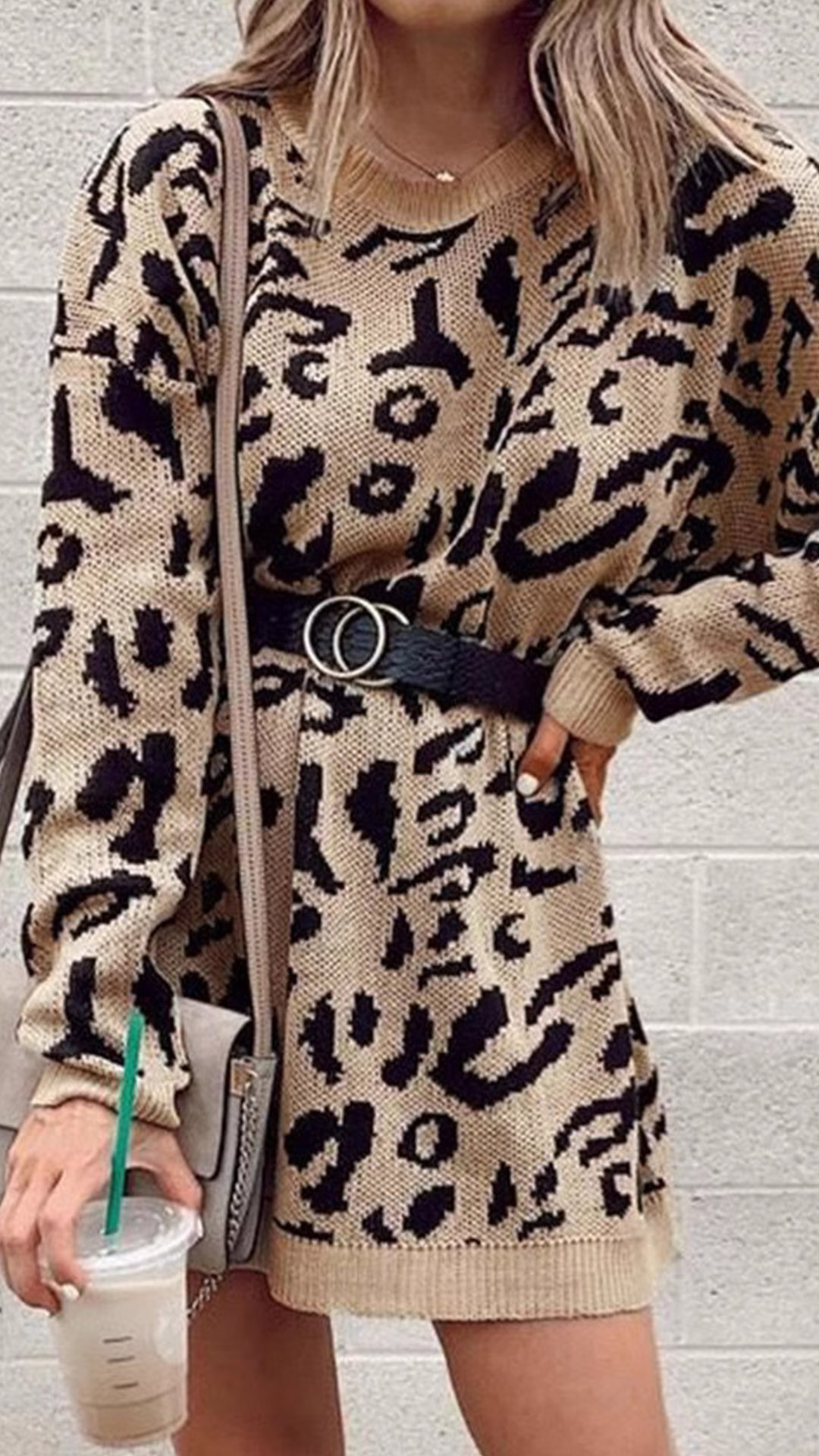 Stay on-trend with this Sweater Dress. This stylish sweater dress features a bold leopard print design that adds a touch of edgy sophistication to your look. You could pair it with ankle boots for a casual vibe or dress it up with heels for a night out.