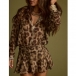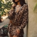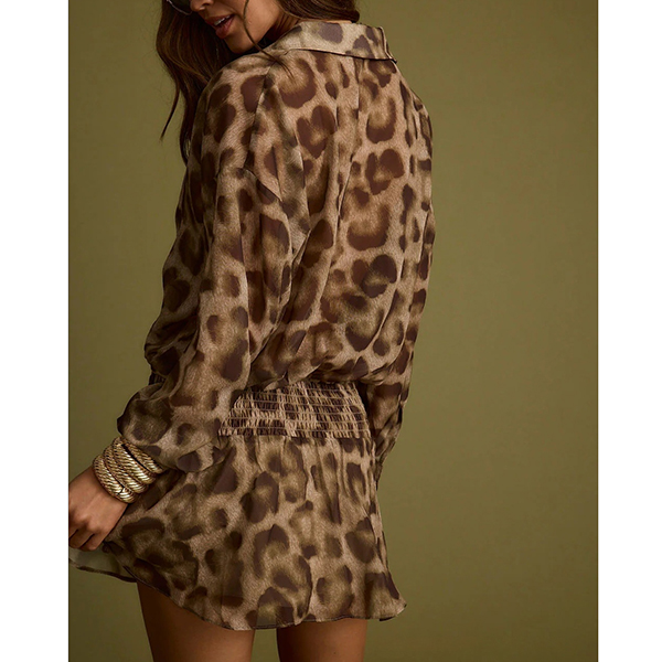 Fashion Leopard Printed Front Button Long Sleeve High-rise Mini Dress